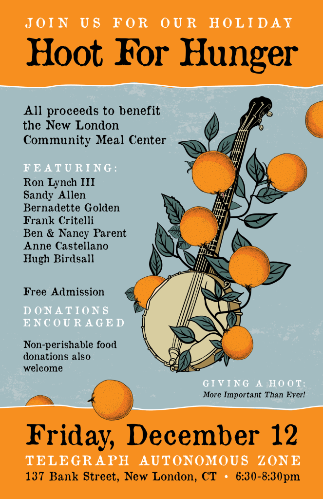 Giving a hoot is more important than ever. We’ll be back at the Telegraph Autonomous Zone Friday, Dec. 12 with some other great artists. All proceeds to benefit the New London Community Meal Center.