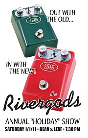 2011 is shaping up to be a great year for the Rivergods (already!)…We’ll be putting the finishing touches on our forthcoming studio album ‘Signs’ in January, which will feature ten new songs from the band. The record is being produced with Eddie Shea (who works/has worked on the road some big talent including Joe Cocker and Brian Wilson… !) and will feature a couple of special guests. We’re looking at a Feb./early March release date, and it’s sounding smokin’ so far… just wait ’til you hear the title track!