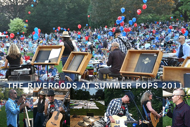 Alright! We happily rocked the park at Summer Pops 2011 yesterday… it was quite a day/night, and a real treat for us. A big deal to Rhode Islanders – a 31-year tradition that we were glad to get to be a part of. The sun came out, the crowds came to their pre-positioned blankets (see sound check shot, above center), and the balloons were soon flyin’ and the canons a boomin’. A big thanks to everyone who came out to support us!