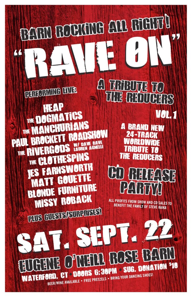 Please join us Saturday, Sept. 22 for the official CD release party for “Rave On: A Tribute to the Reducers Vol. 1”, a brand new 24-track tribute to our good friends The Reducers. We had the pleasure of recording one of our favorite songs of theirs, “My Problem” for the album.