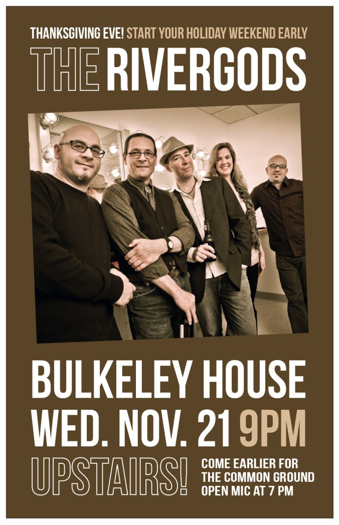 We’ll be upstairs at Bulkeley House in New London for a homecoming show Thanksgiving Eve (Wednesday 11/21) at 9 pm. We’ll be playing a couple of sets, and there may be a few special guests in the house! Should be a great time. The Common Hour Open Mic/Happy Hour is on downstairs before that, starting at 7pm, with drink and food specials. Hope to see you there! More info >